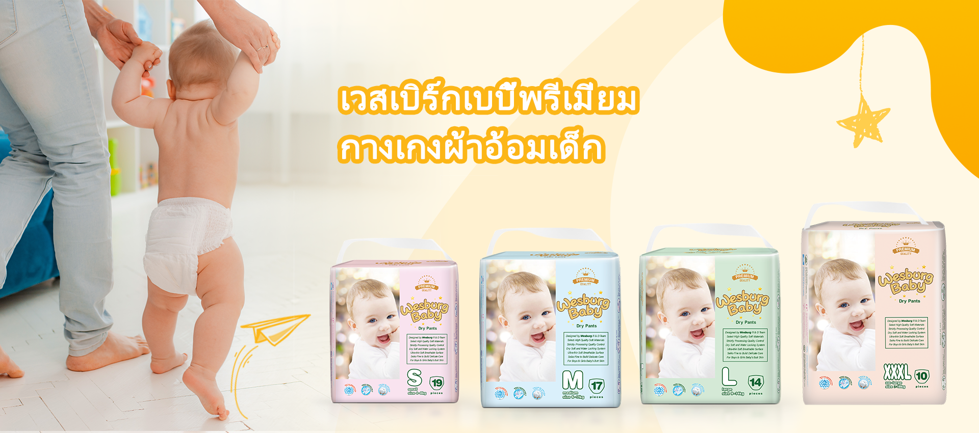 1Wesburgที่รัก ออกแบบมาเพื่อการเคลื่อนไหวของทารกที่กระตือรือร้น ผ้าอ้อมแบบดึงขึ้น Wesburg มี: