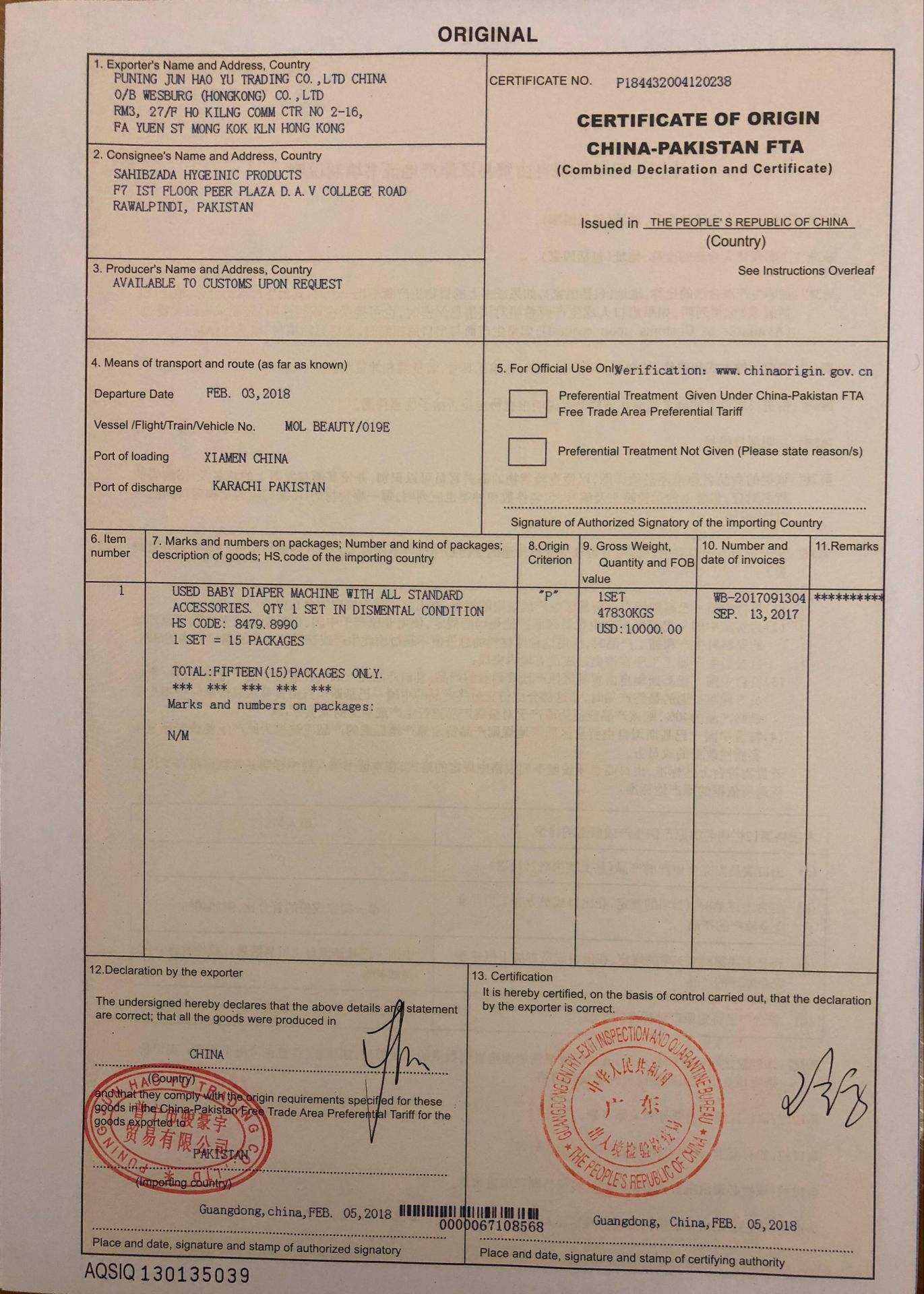 หนังสือรับรองแหล่งกำเนิดสินค้า (FTA)