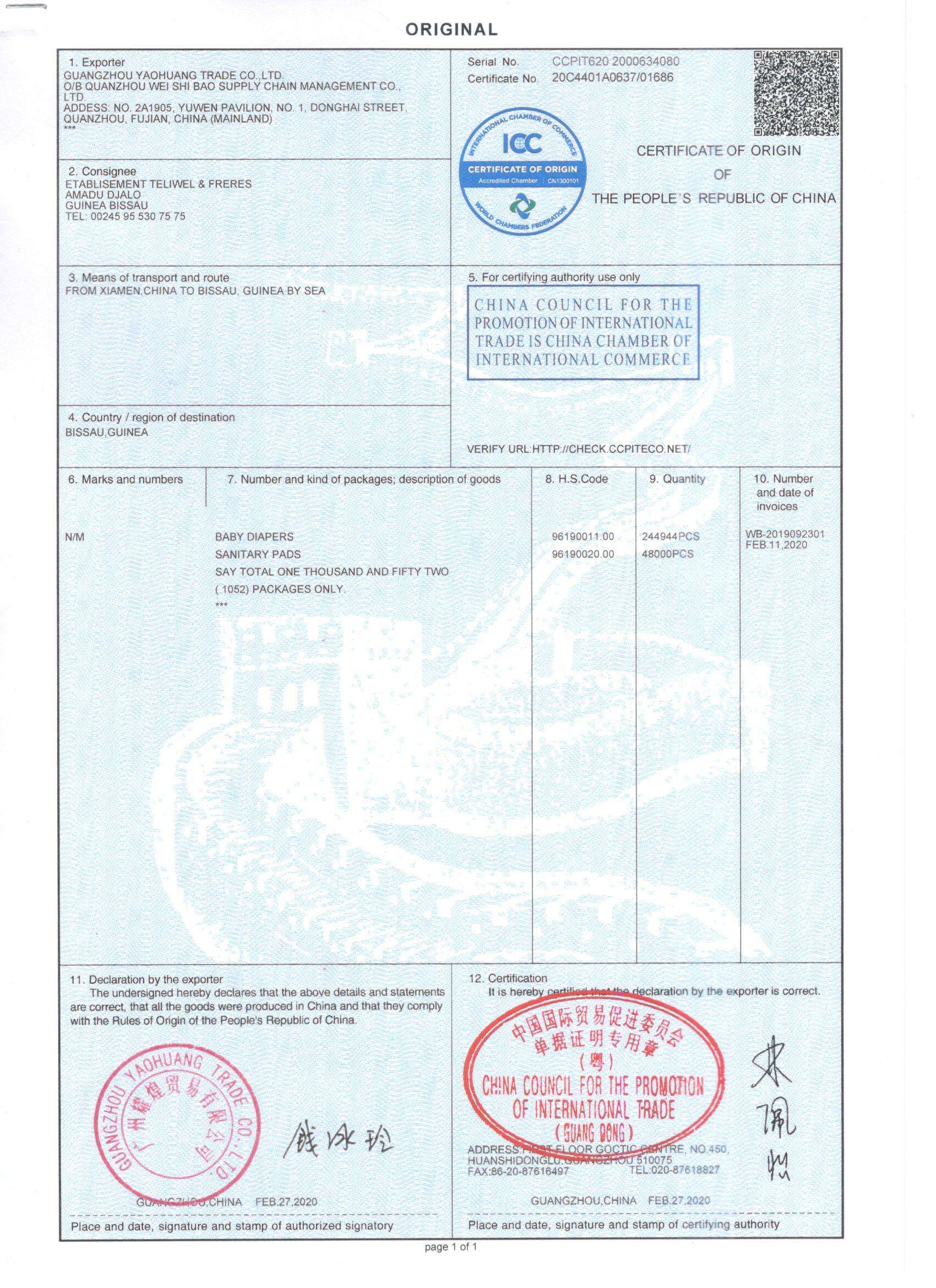 หนังสือรับรองแหล่งกำเนิดสินค้า (CO)